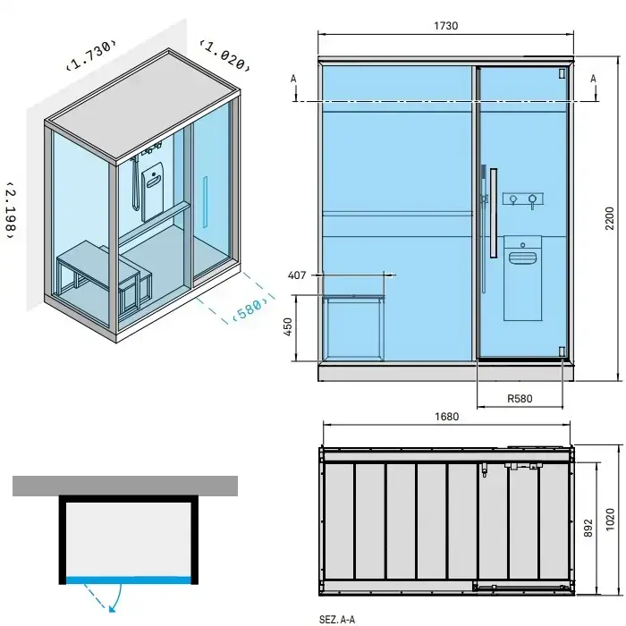 Effegibi H Large Хаммам с душем, пристенный R.H. 173x102xh220см, отделка: Soft Sand