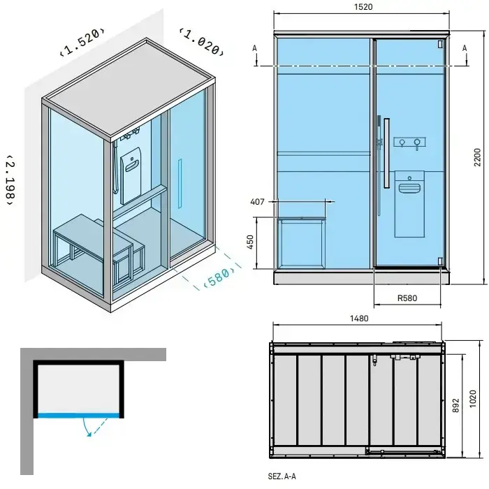 Effegibi H Medium Хаммам с душем 152x102x220 см, пристенная, цвет: Soft Sand