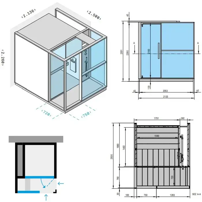 Effegibi Logica H Хаммам с душевой зоной, пристенный L.H. 214x250xh226см, отделка: Soft Sand
