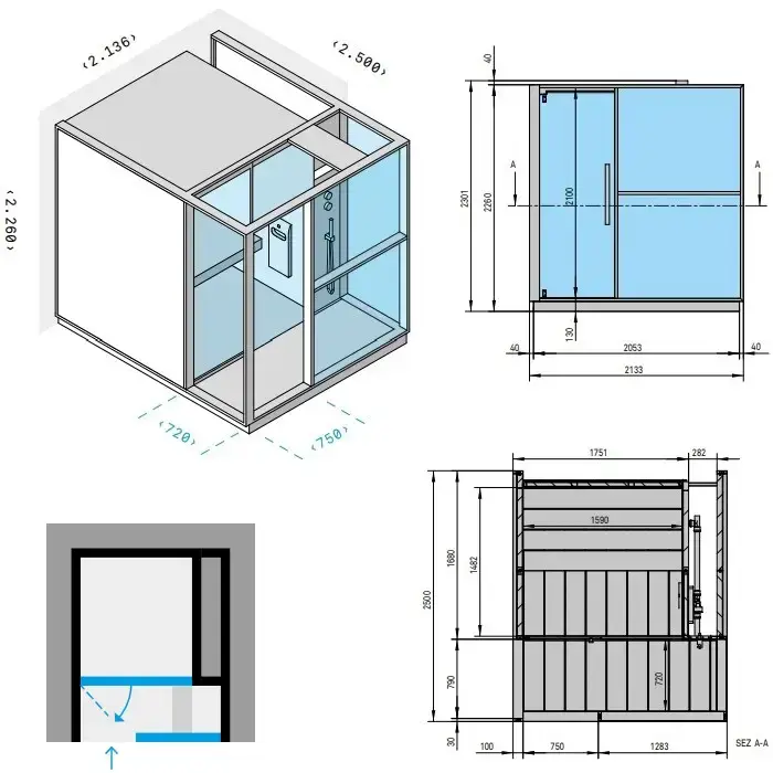Effegibi Logica H Хаммам с душевой зоной 214x250x226см, пристенная, цвет: Soft Sand