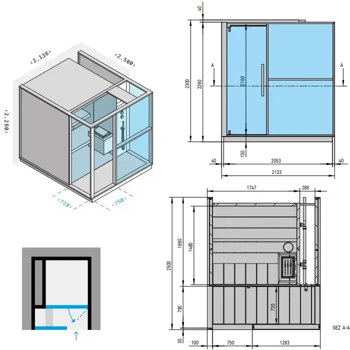 Effegibi Logica S Сауна с душем 214x250x226см, угловая SX, цвет: Soft Sand
