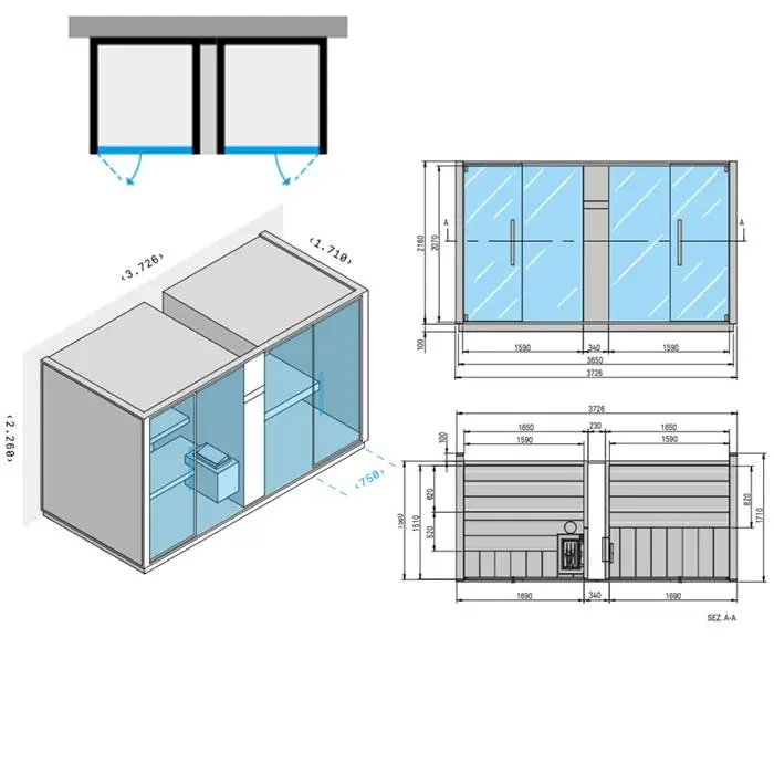 Effegibi Logica SH Сауна & Хаммам система, пристенный 373x171xh226см, отделка: Soft Sand