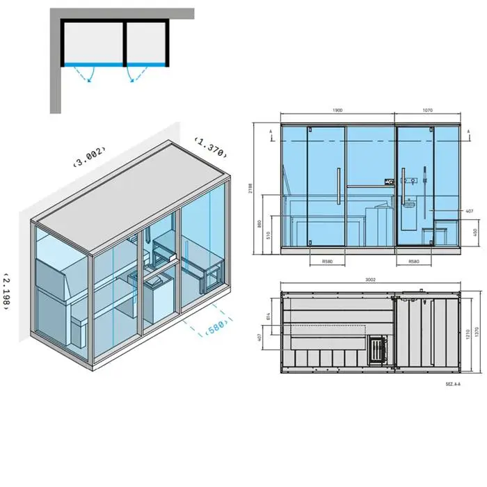 Effegibi Mid Сауна с хаммам и душем, угловая SX, 300x137xh220см, отделка: Soft Sand