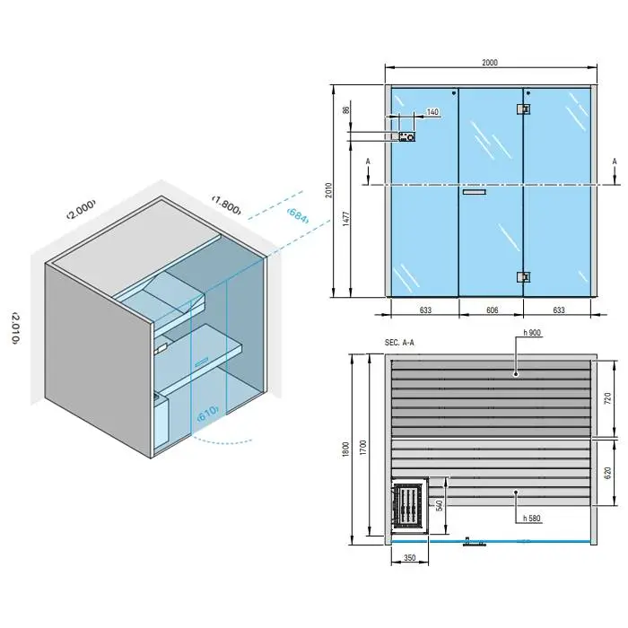 Effegibi Sky Сауна 230x200х211см, пристенная, цвет: осина термообработанная