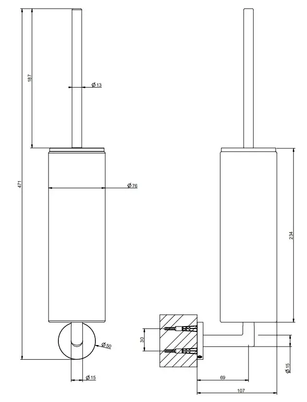 Ершик туалетный Gessi Tondo 63620#707 черный/black metal brushed PVD