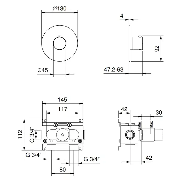 FANTINI AA/27 Смеситель настенный встраиваемый, термостатический, внешняя часть, отделка Matt Gun Metal PVD