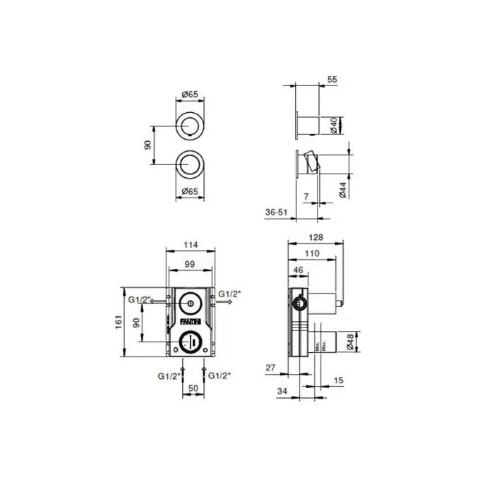 Fantini AF/21 Встраиваемый смеситель для душа на 2 потока, цвет: Matt Gun Metal PVD