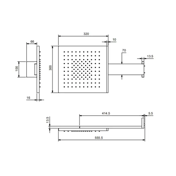 FANTINI ACQUAFIT Верхний душ 300х320 мм., с настенным держателем 414,5 мм., хромотерапия, внешняя часть, цвет черный матовый