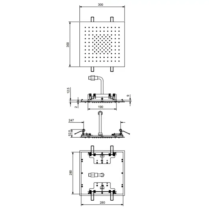 FANTINI ACQUAFIT Верхний душ 300х300 мм., встраиваемый в потолок, цвет Матовая натуральная сталь