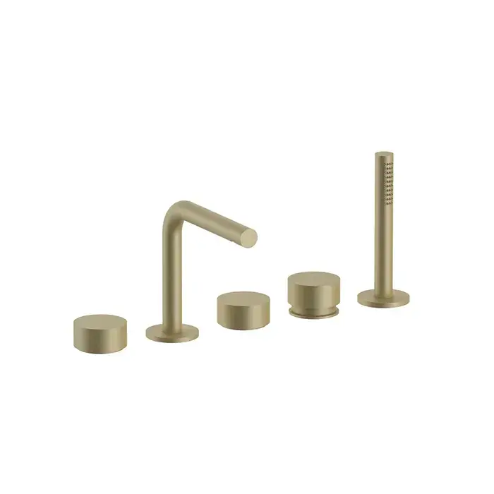 Fantini AF/21 Смеситель на борт ванны, 5 отв., с ручн душем, излив 155мм, цвет: Matt British Gold PVD