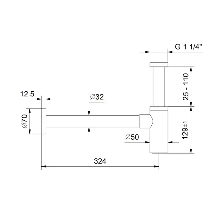 Fantini AF/21и Сифон бутылочный 1'' 1/4 для раковины, черный матовый