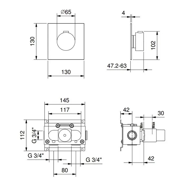 FANTINI AF/21 Смеситель настенный встраиваемый, термостатический, отделка матовая натуральная сталь