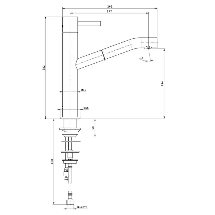 Fantini AF/21 Смеситель для раковины, 1 отв., без донного клапана, излив 217мм, цвет: матовая натуральная сталь