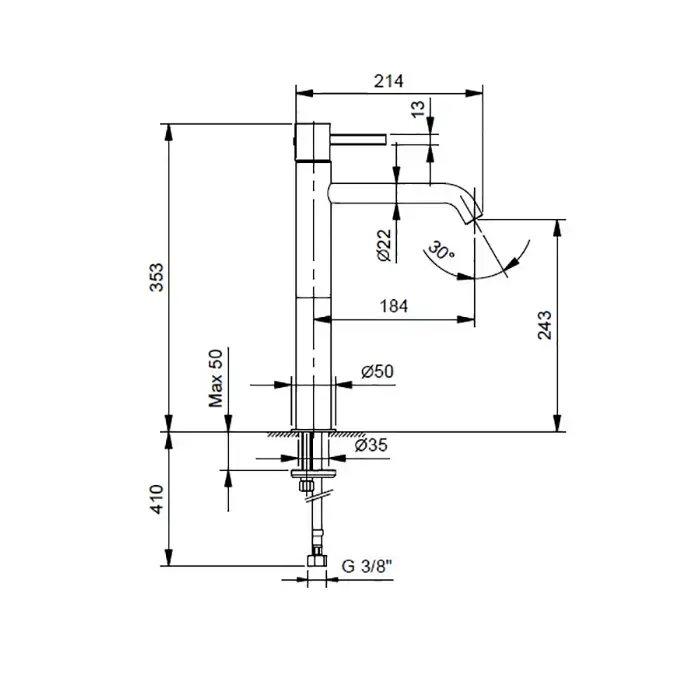 Fantini AF/21 Смеситель для раковины, 1 отв., высокий излив, излив: 18.4 см, цвет: матовая натуральная сталь