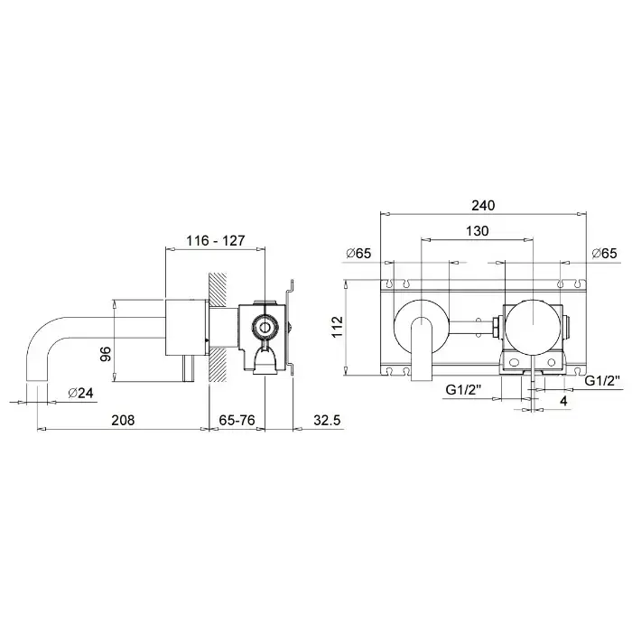 Fantini AF/21 Смеситель для раковины, настенный, излив: 208 мм, цвет: Matt Copper PVD