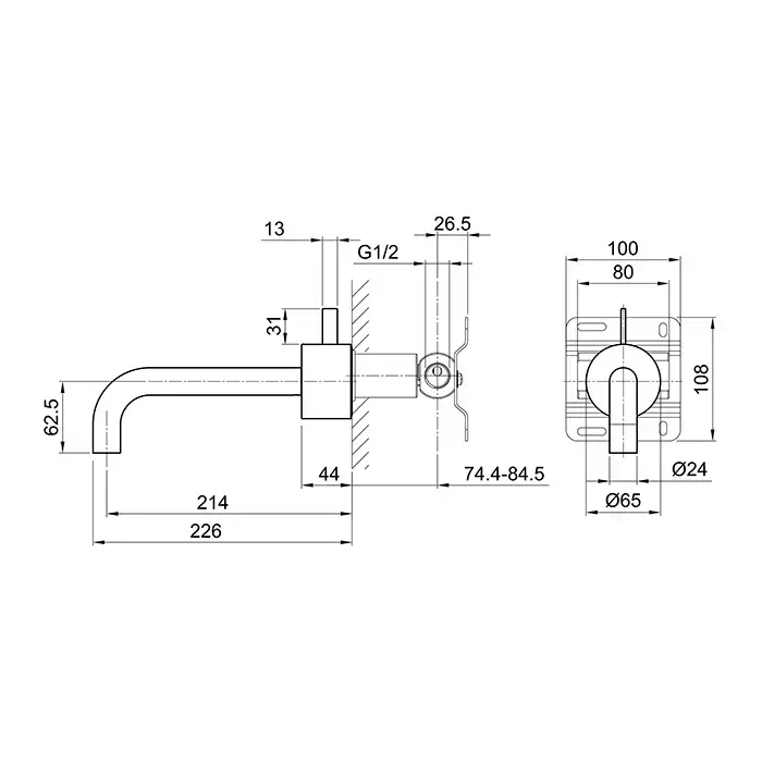 Fantini AF/21 Смеситель для раковины, настенный, излив: 21.4 см, цвет: матовая натуральная сталь