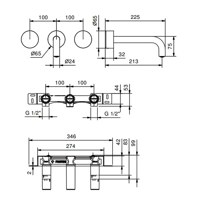 Fantini AF/21 Смеситель из стены для раковины (Наружная часть), цвет Matt Gun Metal PVD