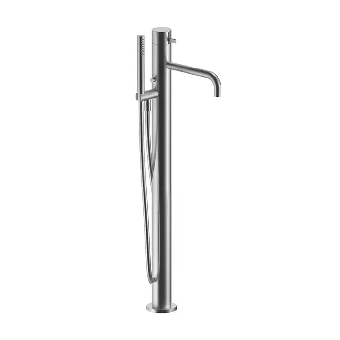 Fantini AF/21 Смеситель для ванны, напольный, с ручн душем, излив 250мм, (наружняя часть), цвет: матовая натуральная сталь
