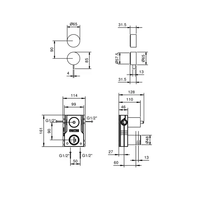 Fantini AF/21 Встраиваемый смеситель для душа на 2 потока, цвет: Matt Gun Metal PVD