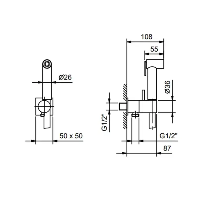 Fantini AK/25 Гигиенический душ, с запорным вентилем, и шлангом 120см., цвет: Matt Gun Metal PVD