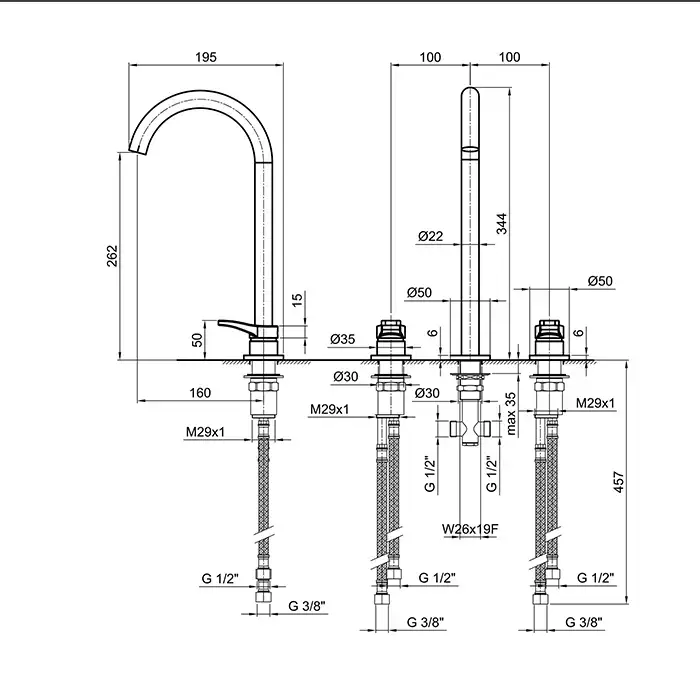 Fantini AL/23 Смеситель для раковины, 3 отв., высокий излив, излив: 160 мм, цвет: хром