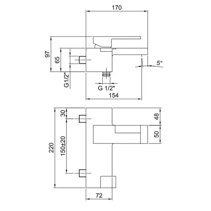 Fantini AR/38 Смеситель для ванны, настенный, излив 155мм, цвет: хром