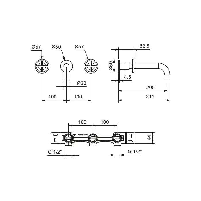 Fantini Fontane Bianche Смеситель для раковины, настенный, цвет: Matt Gun Metal PVD