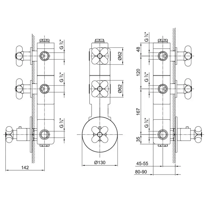 Fantini Внутренняя часть запорного вентиля, переключатель на 3 источника, 1/2''