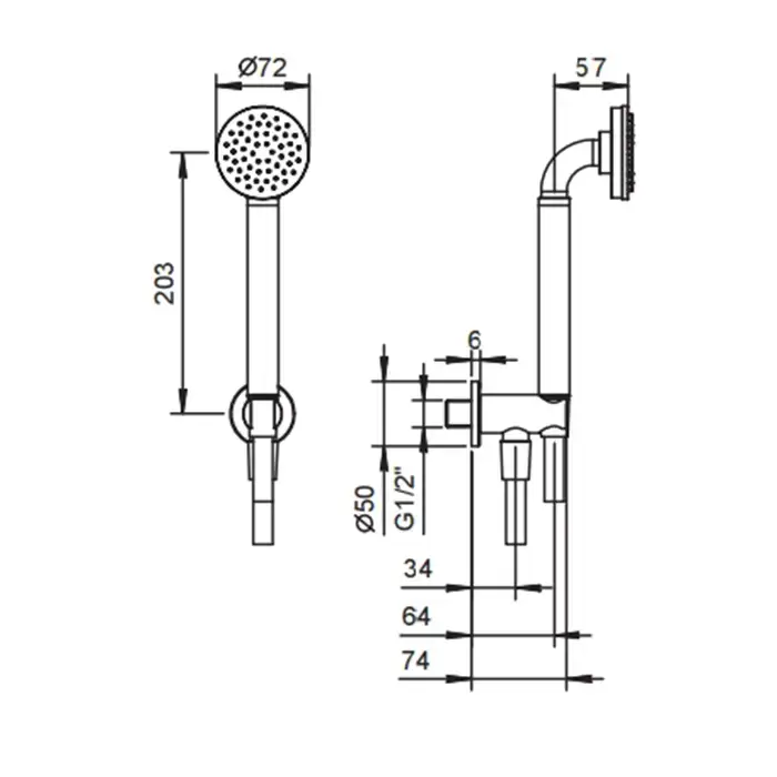 Fantini Icona Classic Душевой набор: ручная лейка со шлангом и держателем,круглая розетка, выпуск 1/2, цвет черный матовый