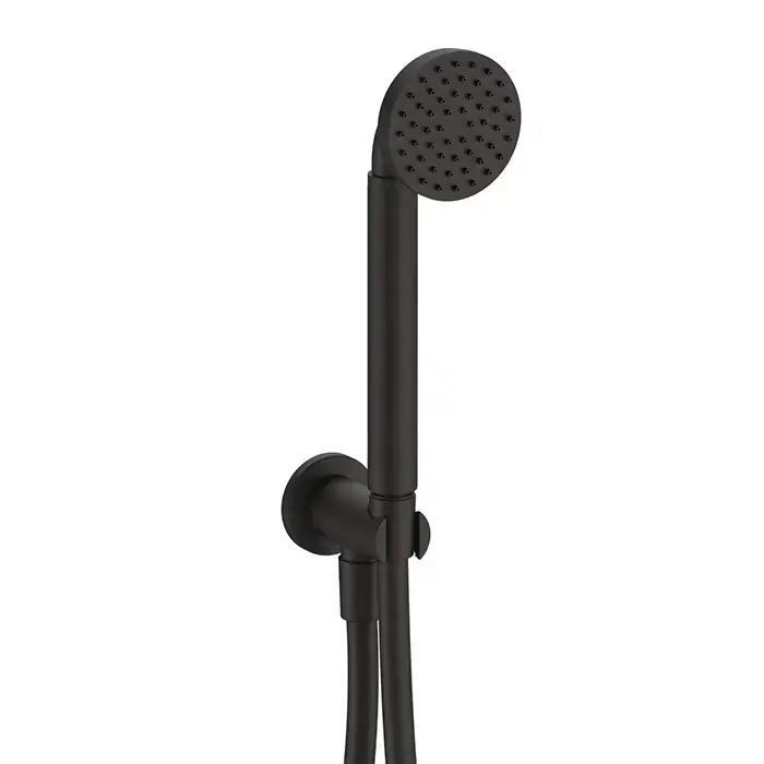 Fantini Icona Classic Душевой набор: ручная лейка со шлангом и держателем,круглая розетка, выпуск 1/2, цвет Deep Black PVD