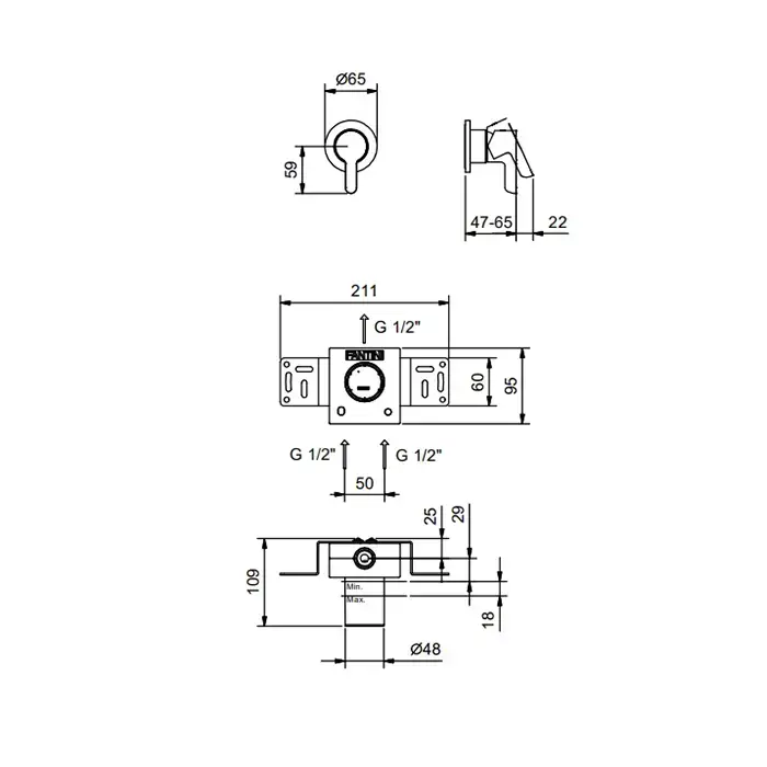 Fantini Внутренняя часть смесителя для ванны, переключатель на 2 источника, 1/2"