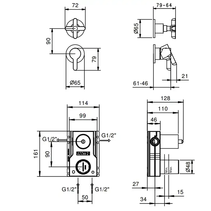 Fantini Icona Classic Смеситель для душа, встраиваемый, на 2 источника, 1/2, (наружняя часть), цвет: хром