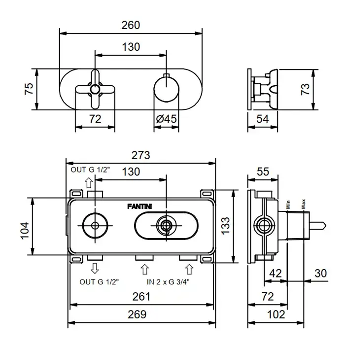 Fantini ICONA CLASSIC Термостатический встраиваемый смеситель для душа, 3/4'' (наружная часть), цвет: хром