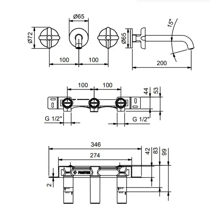 Fantini Внутренняя часть смесителя для ванны, переключатель на 2 источника, 1/2"
