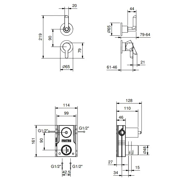 Fantini Внутренняя часть смесителя для ванны, переключатель на 2 источника, 1/2"