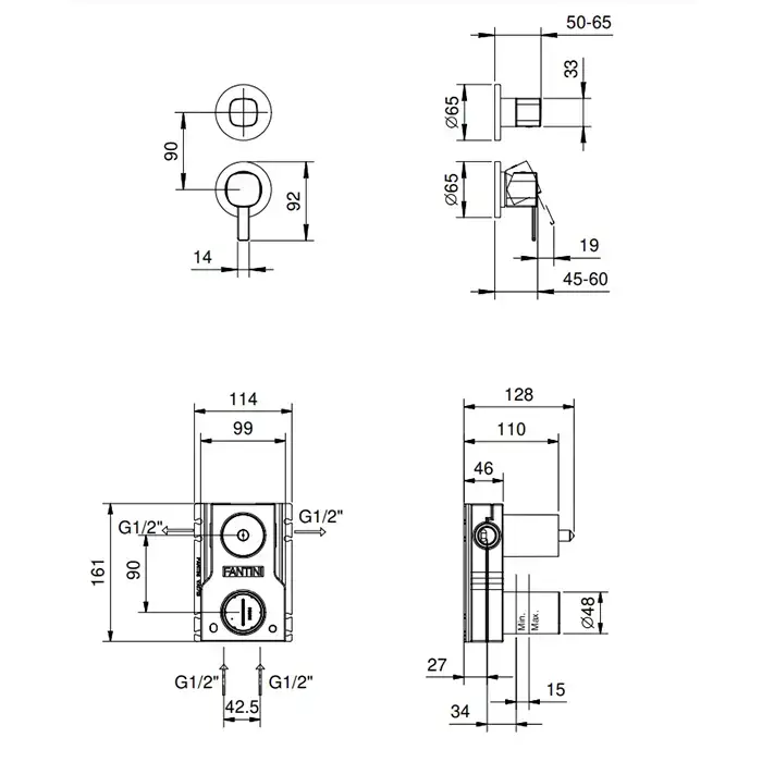 Fantini Lame Смеситель для душа, встраиваемый, на 2 источника, (наружняя часть), цвет: черный матовый
