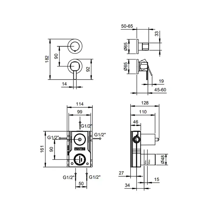 Fantini Lame Смеситель для душа, встраиваемый , перекл на 3 потока, цвет черный матовый