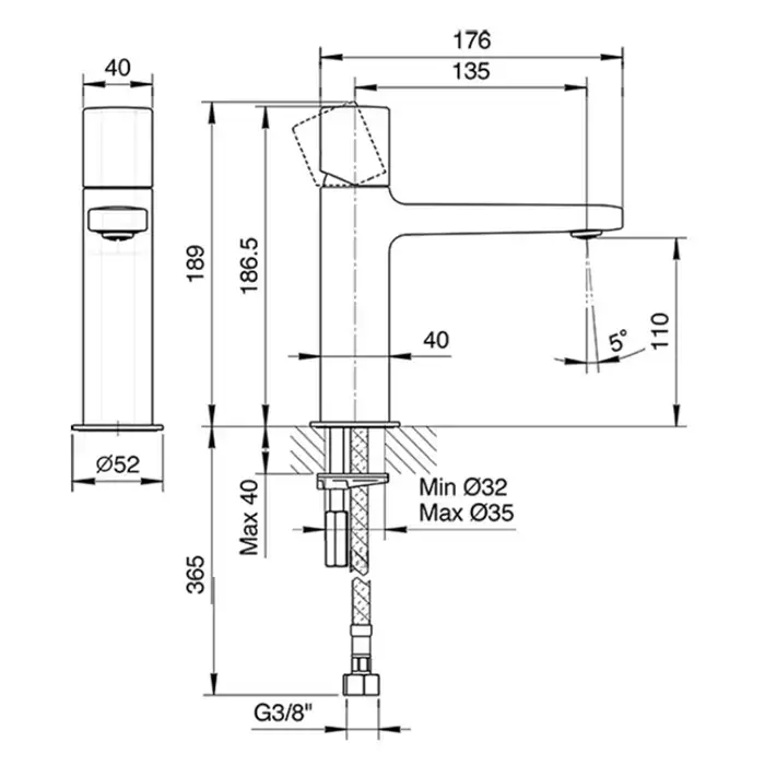Fantini Lame Смеситель для раковины, 1 отв., без донного клапана, излив 135мм, цвет: хром