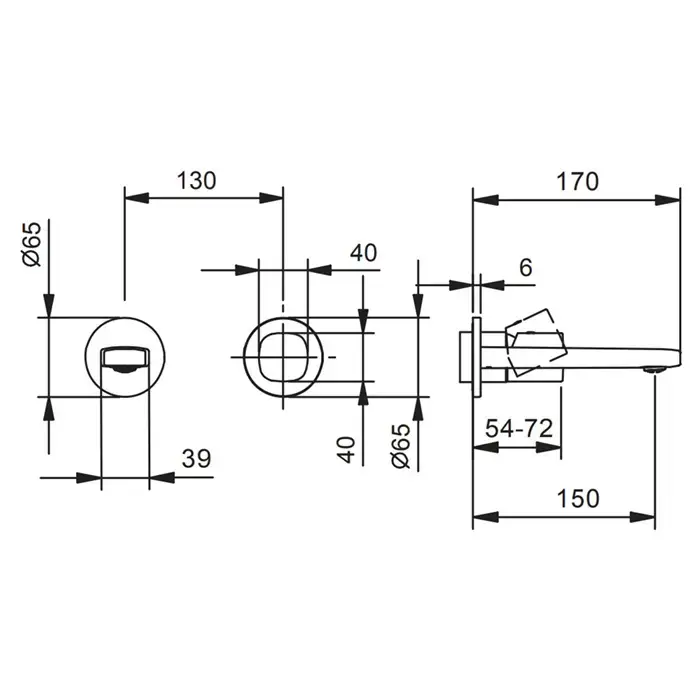 Fantini Lame Смеситель для раковины, встраиваемый, на 2 отв, без донного клапана, излив 150мм (наружняя часть), цвет: хром