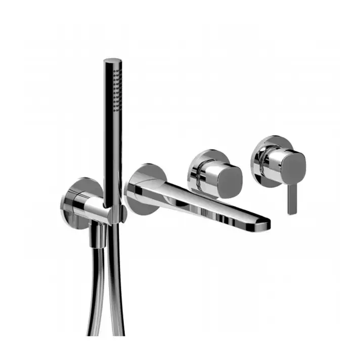 Fantini Lame Смеситель для ванны, встраиваемый, на 2 источника, излив 190мм, с ручн.душем, (наружняя часть), цвет: хром