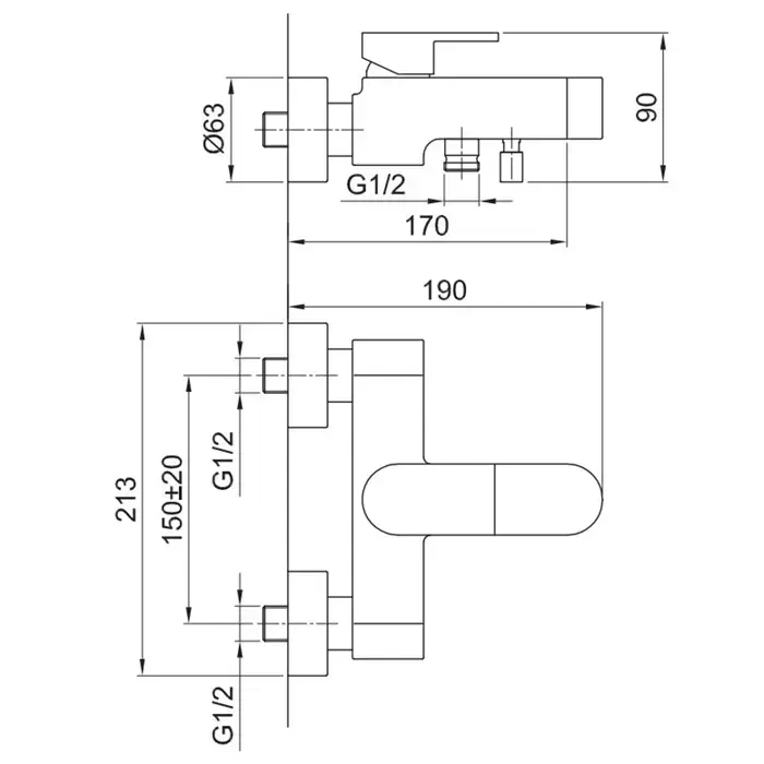 Fantini Mare Смеситель для ванны, настенный, на 2 источника, излив 170мм, с ручн.душем, цвет: хром