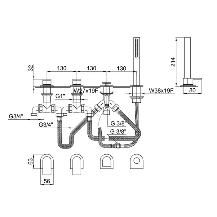 Fantini Mare Смеситель на борт ванны, на 2 источника, 4 отв., с ручн душем, без излива, цвет: хром