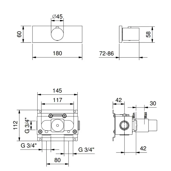 Fantini Milano Смеситель для душа, встраиваемый, термостатический, цвет: Матовая натуральная сталь