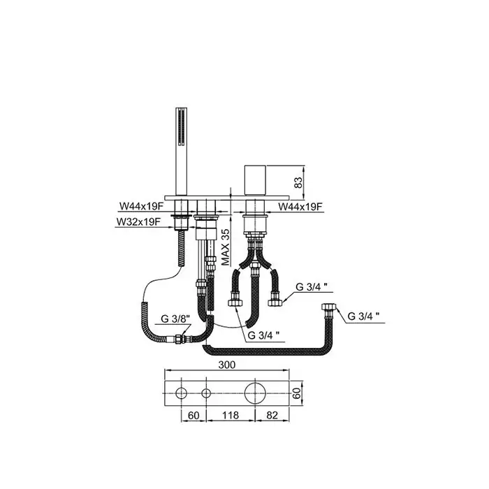 Fantini Milano Смеситель на борт ванны, на 3 отв, на 2 источника, с ручн.душем, без излива, цвет: Matt Gun Metal PVD