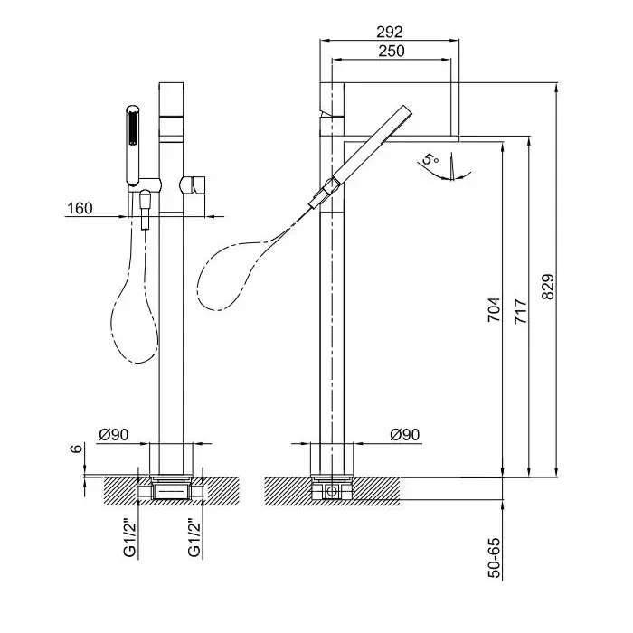 Fantini Milano Смеситель для ванны, напольный, с ручн душем, излив 250мм, (наружняя часть), цвет: хром