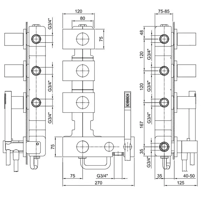 Fantini Milano Встраиваемый термостат для душа на 4 источника, 3/4'', (наружняя часть), цвет: матовая натуральная сталь
