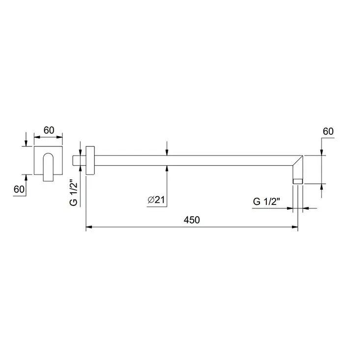 FANTINI MINT Держатель верхнего душа 450 мм., настенный монтаж, цвет матовая натуральная сталь