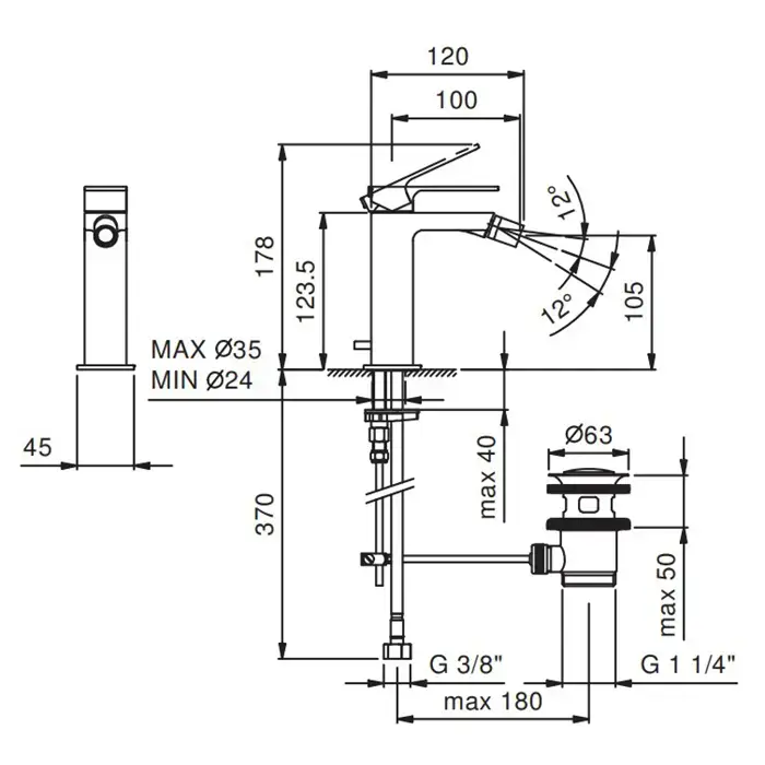 Fantini Mint Смеситель для биде, 1 отв., с донным клапаном, цвет: хром