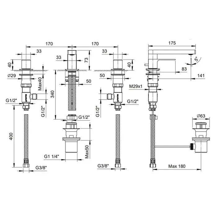 Fantini Mint Смеситель для раковины, 3 отверстия, цвет: хром