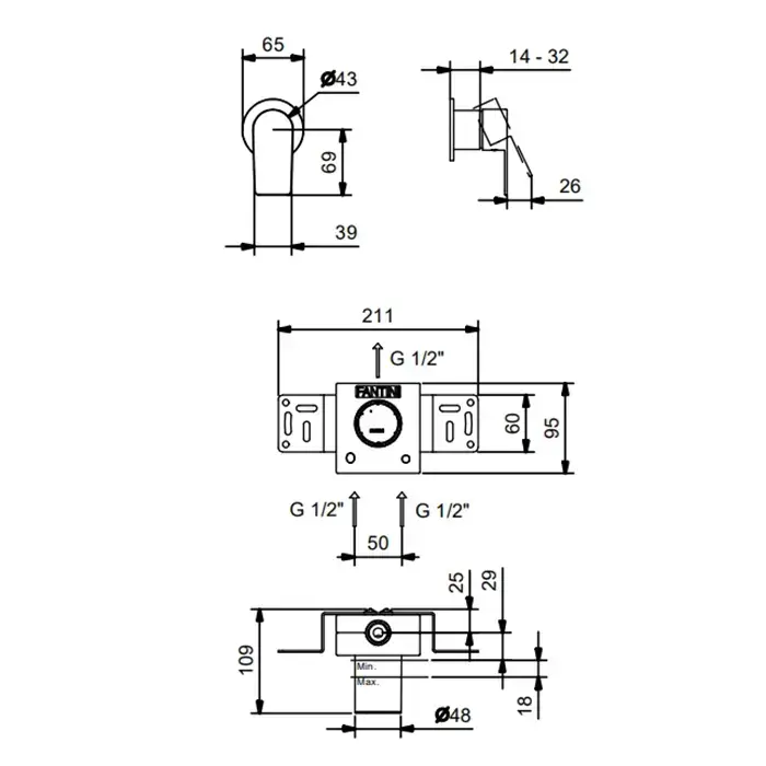 Fantini Myo Смеситель для душа, встраиваемый, цвет: хром